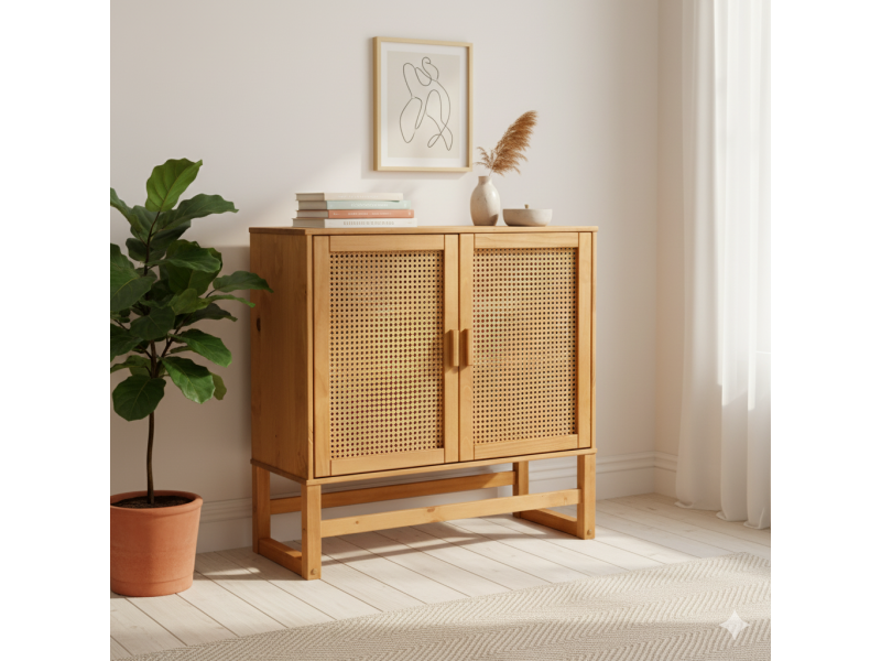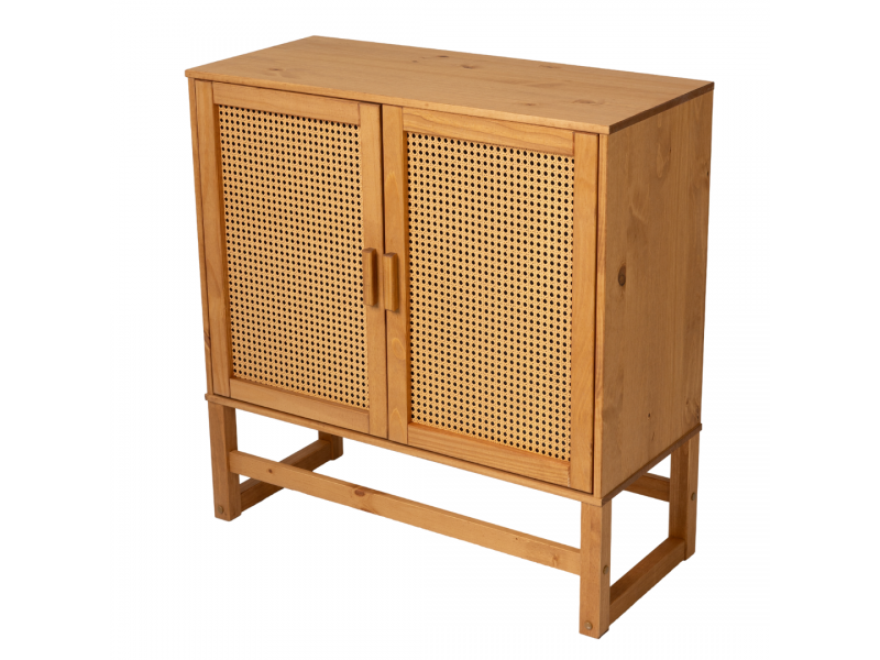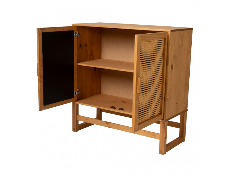 Aparador balcão buffet com duas portas de madeira com palhinha indiana rattan / Coleção Acapulco