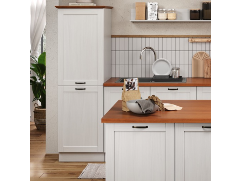 Armário torre com duas portas para cozinha na cor branco lavado com honey / coleção Alma