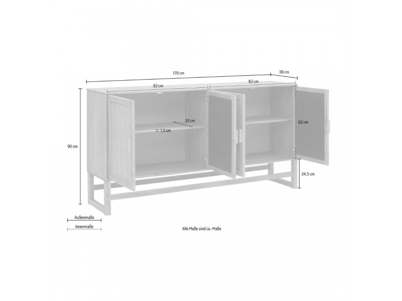 BALCÃO com vidro canelado em cera com toque acetinado natural DE MADEIRA MACIÇA com 4 PORTAS e prateleiras interna / coleção Acapulco