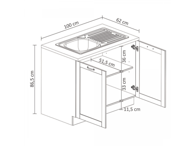 Móvel 01: Armário, bancada para cozinha com uma porta TR-531441