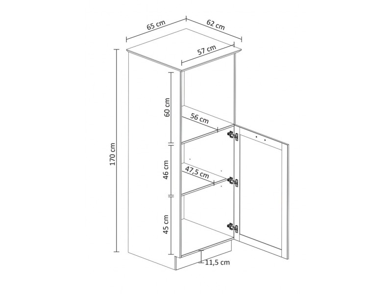 Armário torre com um nicho e uma porta para cozinha na cor branco lavado com honey / coleção Alma