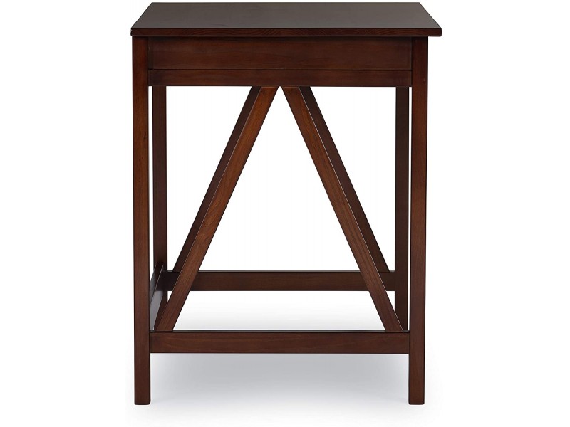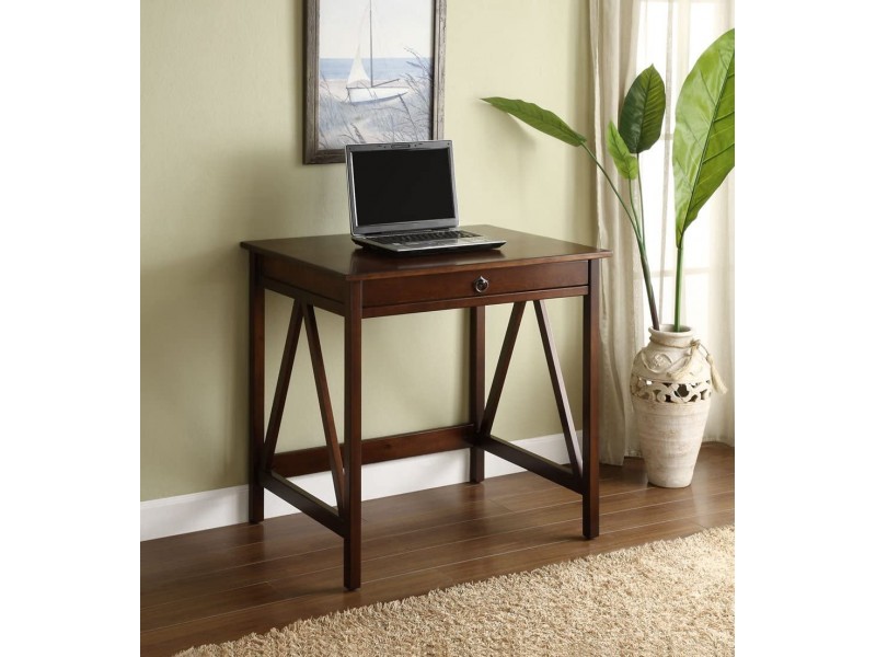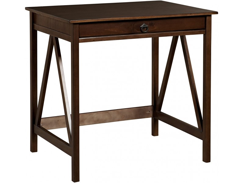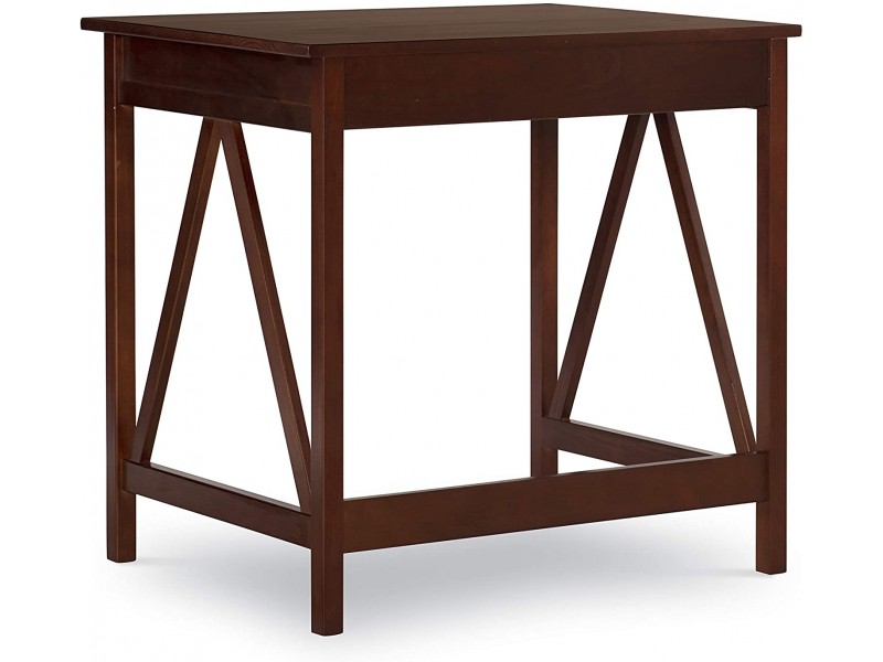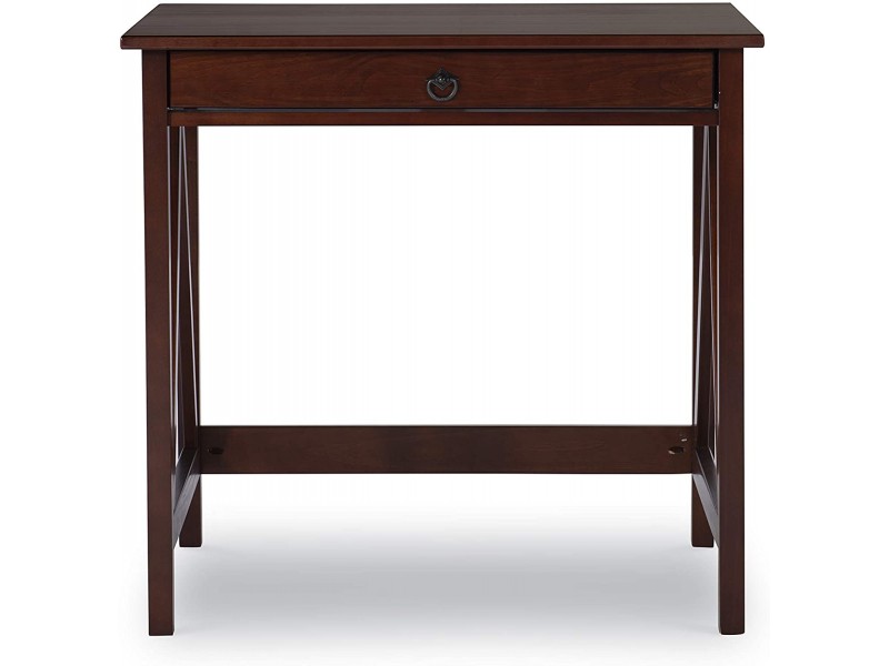 Escrivaninha compacta de madeira maciça com 1 gaveta na cor pinhão | Coleção Titian