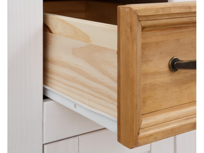 A Coleção England valoriza a beleza da madeira, a combinação do branco lavado com cera, ou o cinza lavado com cera, ou inteiro em cera enaltece a naturalidade e a beleza da madeira. Tanto a cor branco lavado quanto a cor cinza lavado é possível enxergar os belos veios da madeira e em combinação com as frentes das gavetas e tampos em cera, o estilo contemporâneo misturado ao natural se torna único.