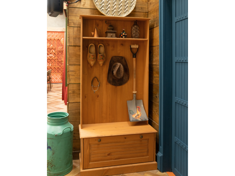Banco cabideiro com sapateira de madeira em cera natural com toque acetinado | Coleção Mille