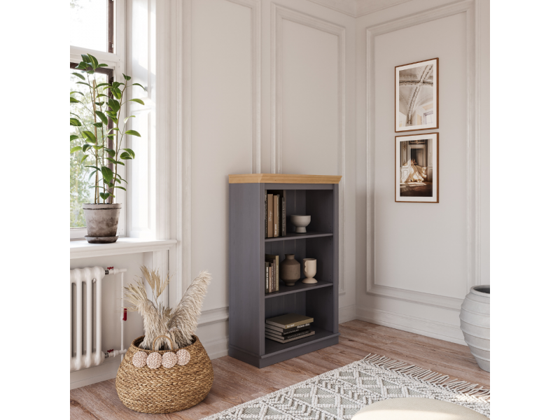 Estante de madeira com 1,19 m na cor cinza e cera natural / Coleção biblioteca