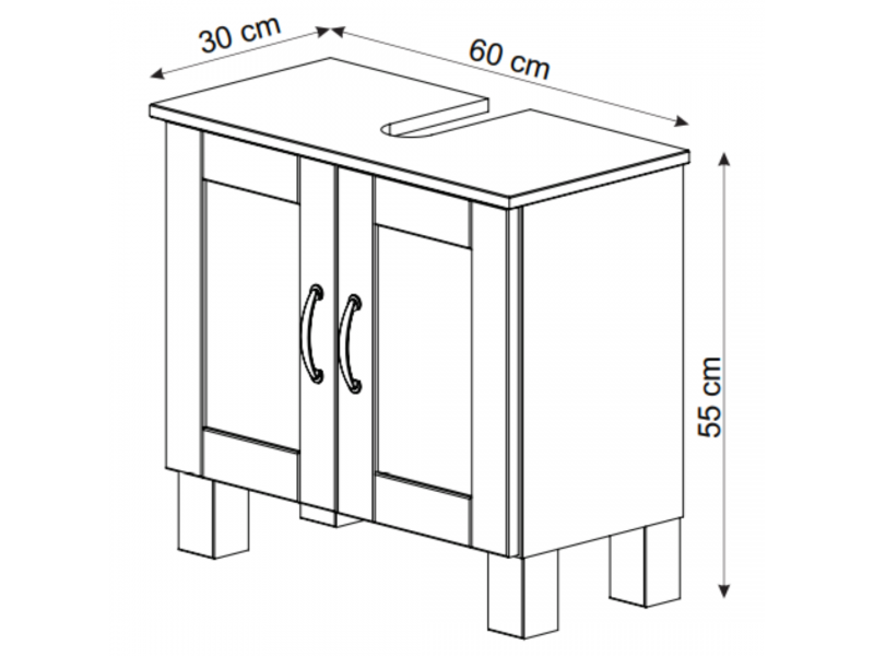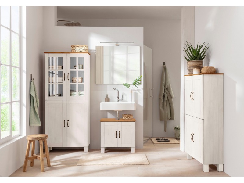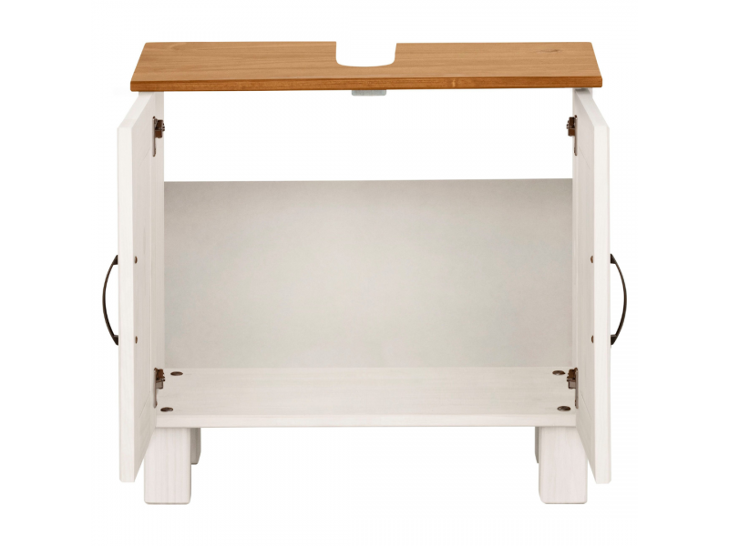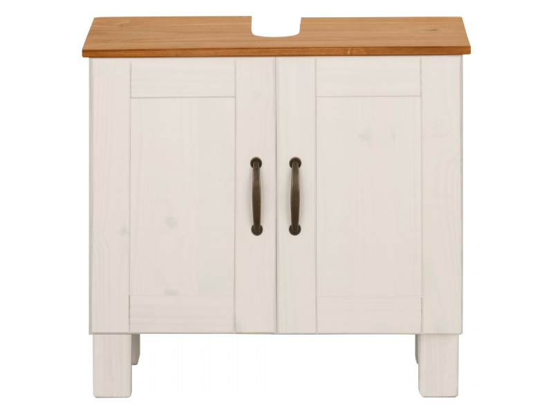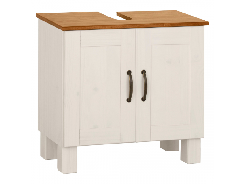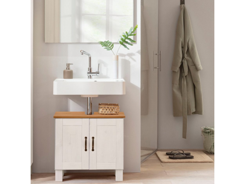 Armário gabinete de pia baixo para banheiro na cor branco lavado com honey com duas portas / coleção Alby