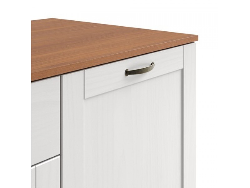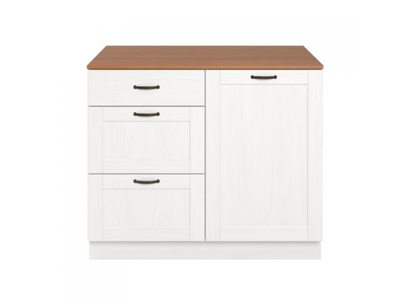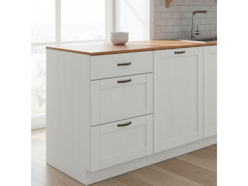 Armário bancada para cozinha com uma porta e três gavetas na cor branco lavado com honey / coleção Alma