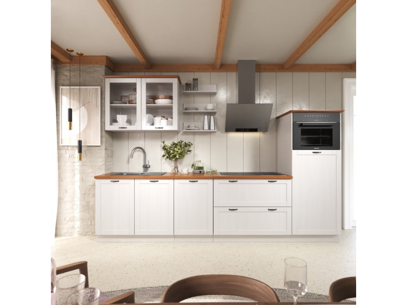 Armário bancada para cozinha com uma porta na cor branco lavado com honey / coleção Alma