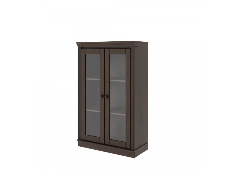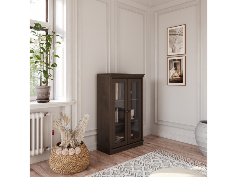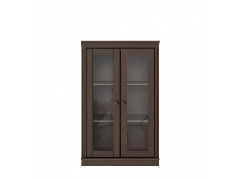 Estante de madeira com 1,19 m com acabamento liso na cor nibs e duas portas de vidro / Coleção biblioteca